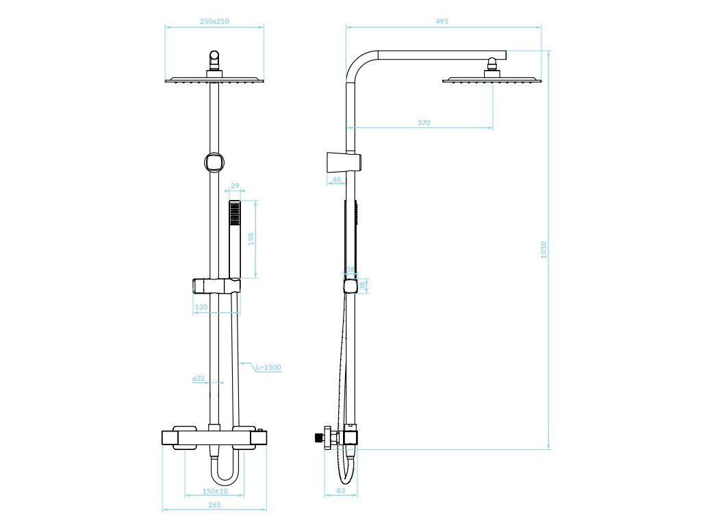 Specifika u sprchového setu Cubi s termostatickou baterií
