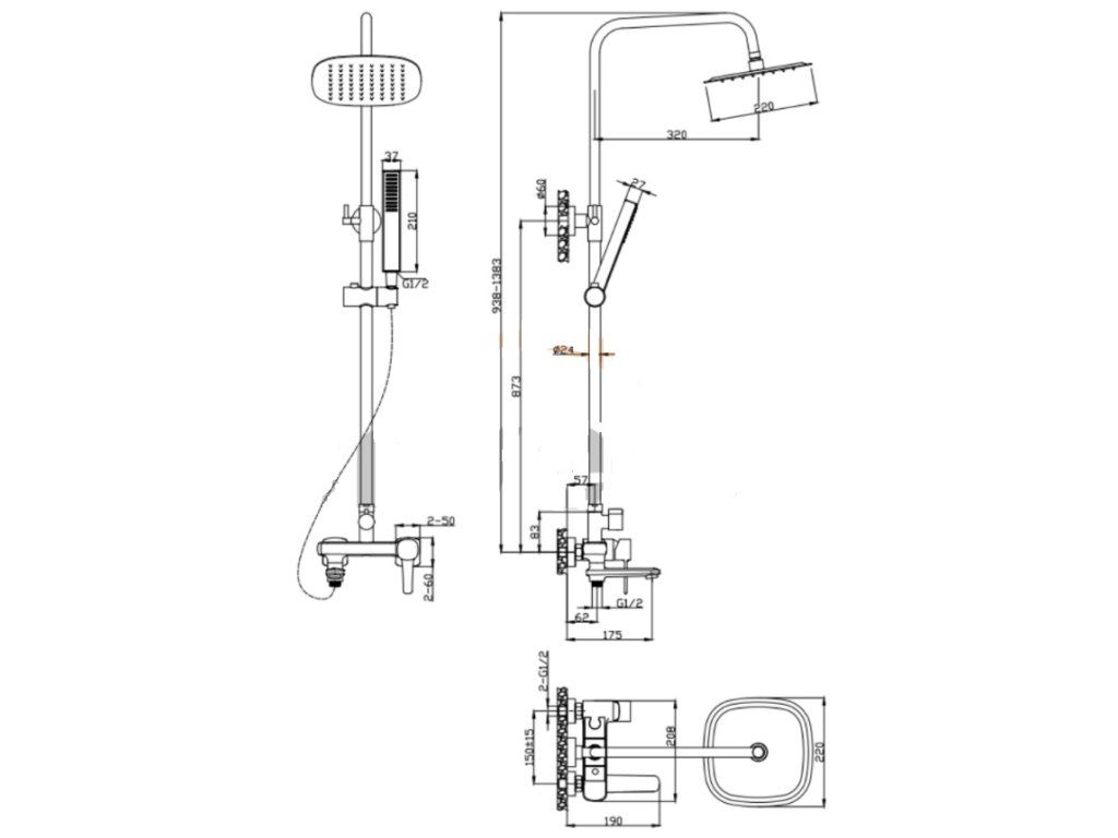 - pohyblivá hlavová sprcha - 22x22 cm, nerezová ocel, AntiCalc systém