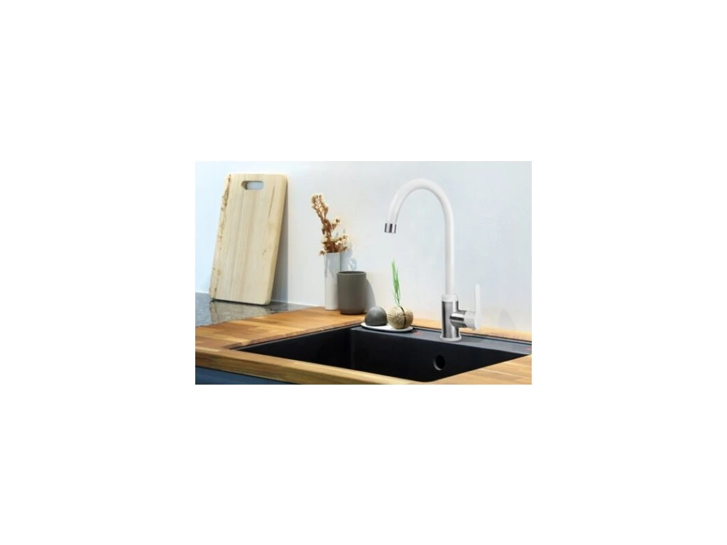 Představujeme Vám krásnou baterii Iron v bílé barvě s prvky nerezové oceli. Baterie, která dokonale zaplní Váš prostor v kuchyni a zároveň zachová dokonalý vzhled a estetiku interiéru.