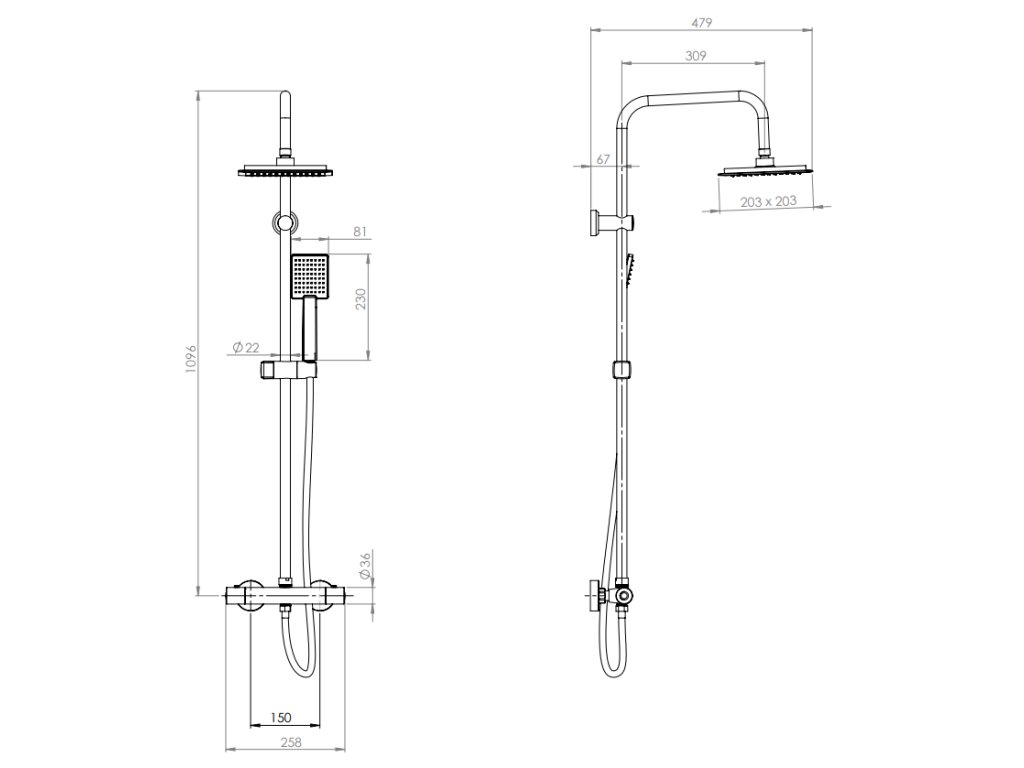 • termostatická baterie - rozteč 150 mm