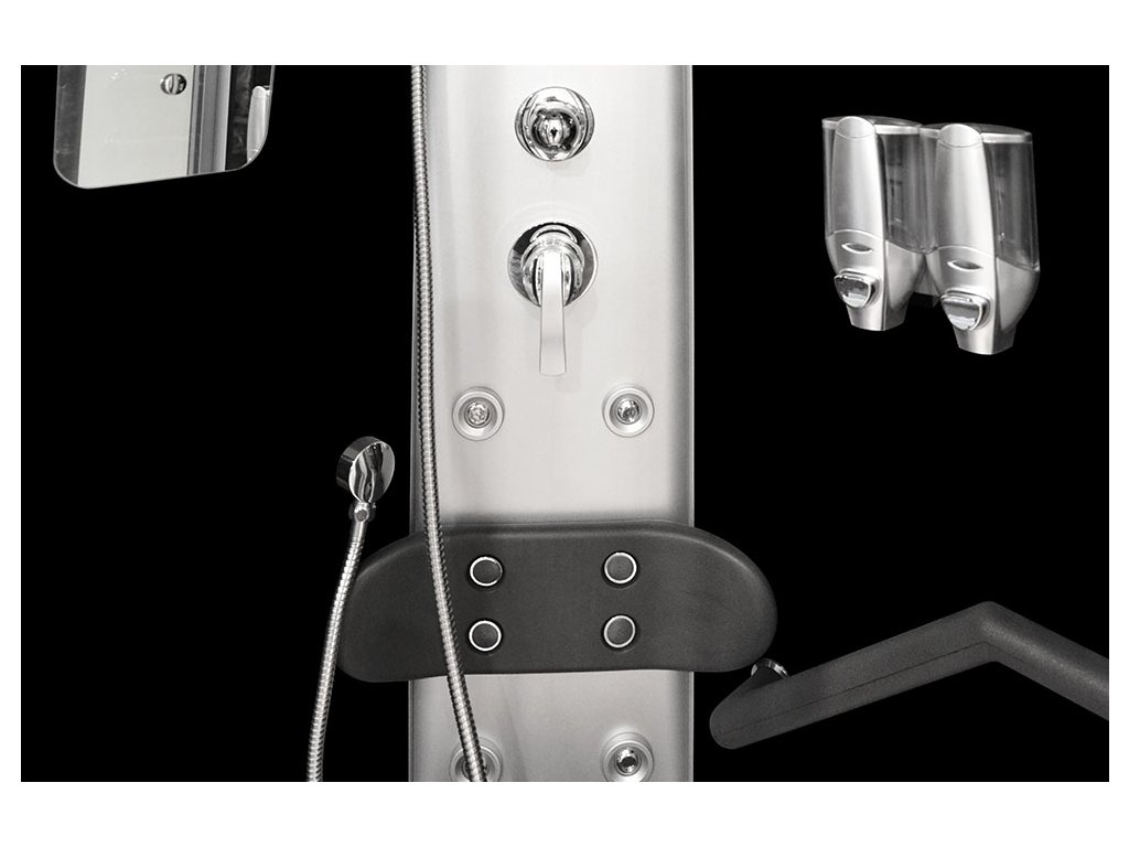 - moderní tmavé provedení čtvrtkruhového masážního sprchového boxu