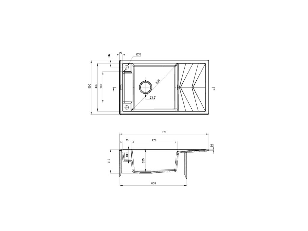 • granitový dřez určený k instalaci na desku nebo pod desku