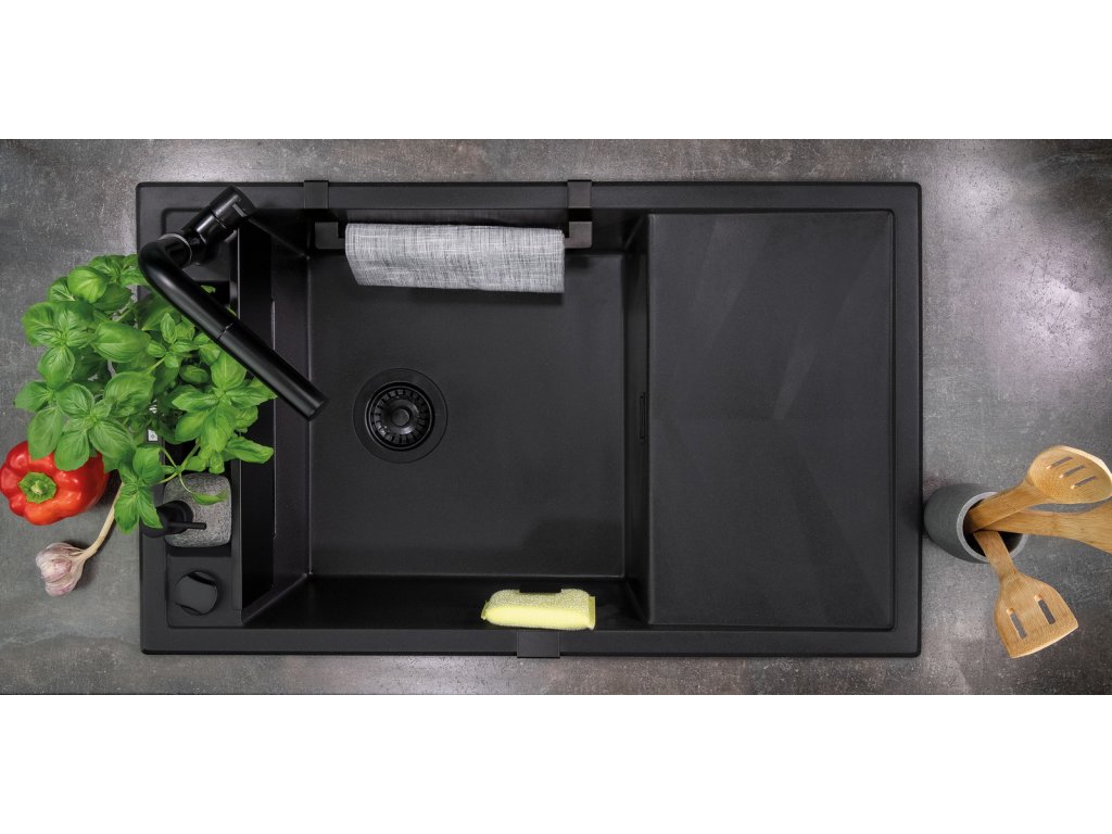 Aplomo Magnetic 82 granitový dřez s odkapávačem, černá, ZRM_N113