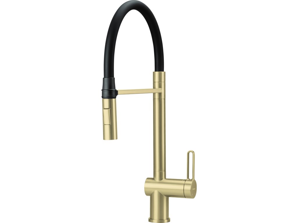 Kuchyňská baterie Magnetic v povrchové úpravě kartáčovaného zlata je kombinací elegance a funkčnosti. Flexibilní výtoková trubice zaručuje pohodlí a volnost při používání, zatímco magnetické upevnění zajišťuje snadné a přesné umístění. Dva režimy stříkání - provzdušňování a déšť - umožňují nastavit proud vody podle různých potřeb. Povrchová úprava v barvě broušeného zlata dodává baterii sofistikovaný dojem a dokonale se hodí do glamour stylu a elegantního, luxusního kuchyňského prostředí.