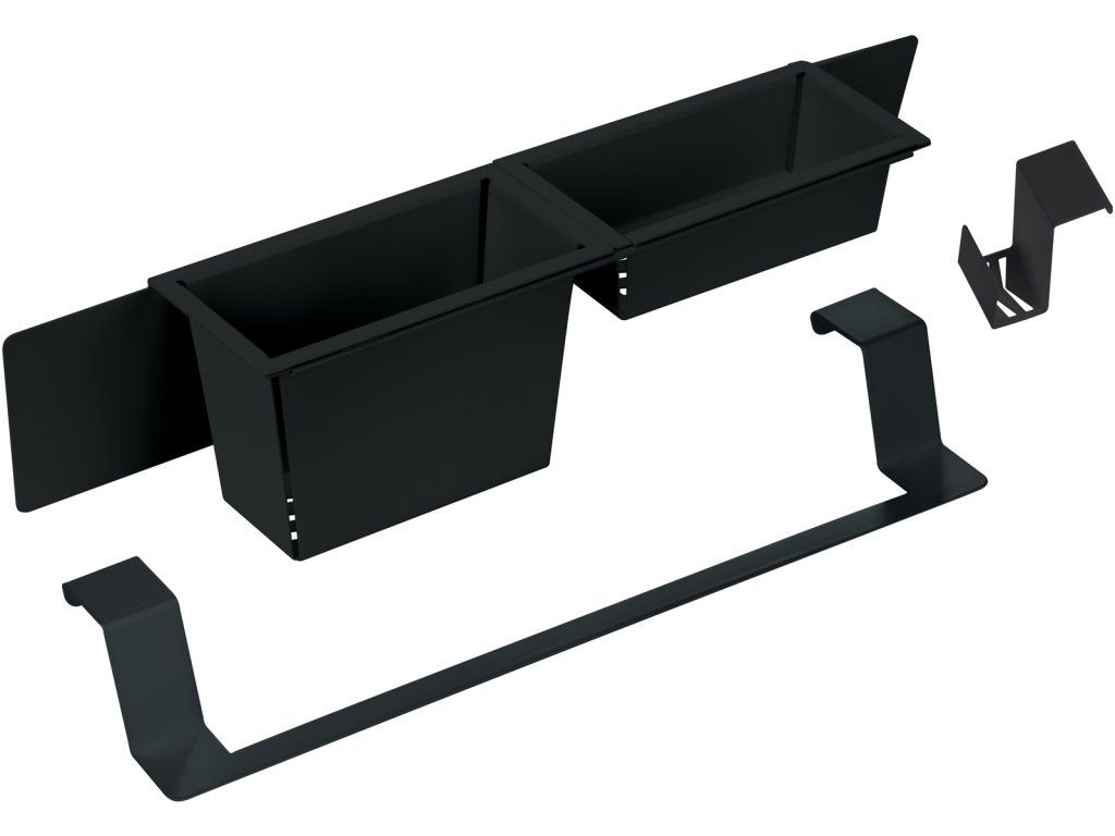 Sada příslušenství ke dřezům je kombinací skvělého designu, pohodlí a funkčnosti. Navíc černá barva jistě dodá vaší kuchyni jedinečný charakter. V sadě obdržíte háček na houbičky, zábradlí na utěrku a hluboký a mělký koš. Všechny výrobky se velmi snadno montují a čistí. Háček zajistí, že se houbička nedostane do kontaktu s jinými předměty. Zajistíte tak vysokou úroveň hygieny a bezpečnost svých blízkých. Příslušenství je vyrobeno z vysoce kvalitní nerezové oceli, která je vysoce odolná proti oděru, mechanickému poškození nebo vlhkosti. Tyto malé nenápadné předměty vám zpříjemní běžné činnosti a rozhodně je učiní pohodlnějšími. Vytvoříte tak ideální místo pro umyté příbory, opláchnuté ovoce a zeleninu nebo nádobí. Organizér je vhodný pro všechny modely dřezů Magnetic.