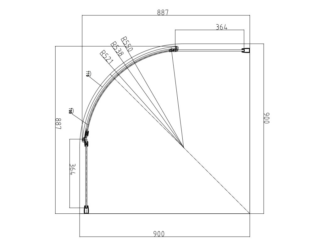 Aplomo Manhattan 90x90 čtvrtkruhový sprchový kout, ADF90XLUX-TCRTR