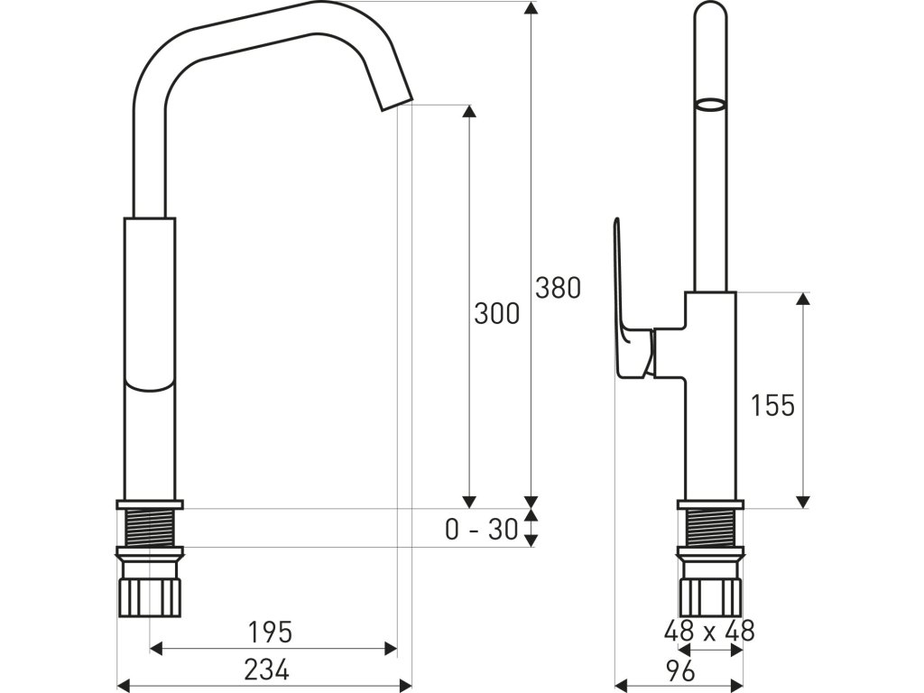 - provedení - vysoká kuchyňská vodovodní baterie