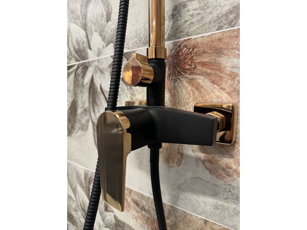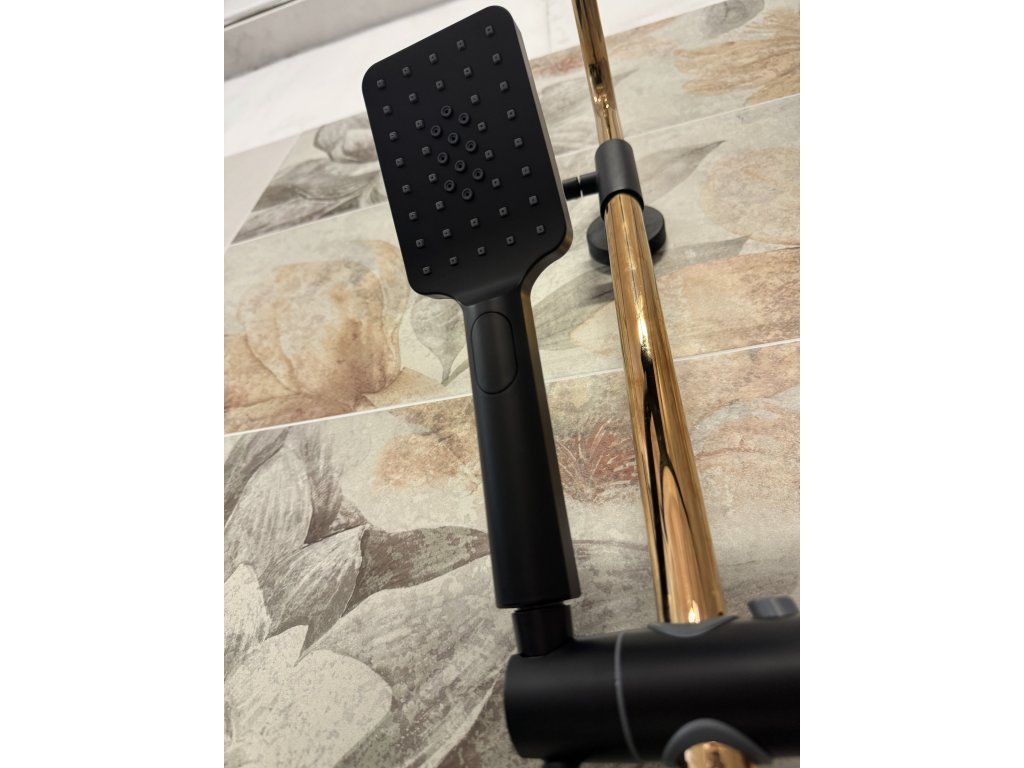 Vysoce kvalitní sprchový set s baterií Midy z mosazi v krásné černé a rose gold barvě je naprosto designový a elegantní kousek do Vaší koupelny. Kombinace dvou nejmódnějších barev v interiérovém designu nadchne každého. Matná černá a růžová zlatá je přesně to, co dokonale doplní design koupelny.