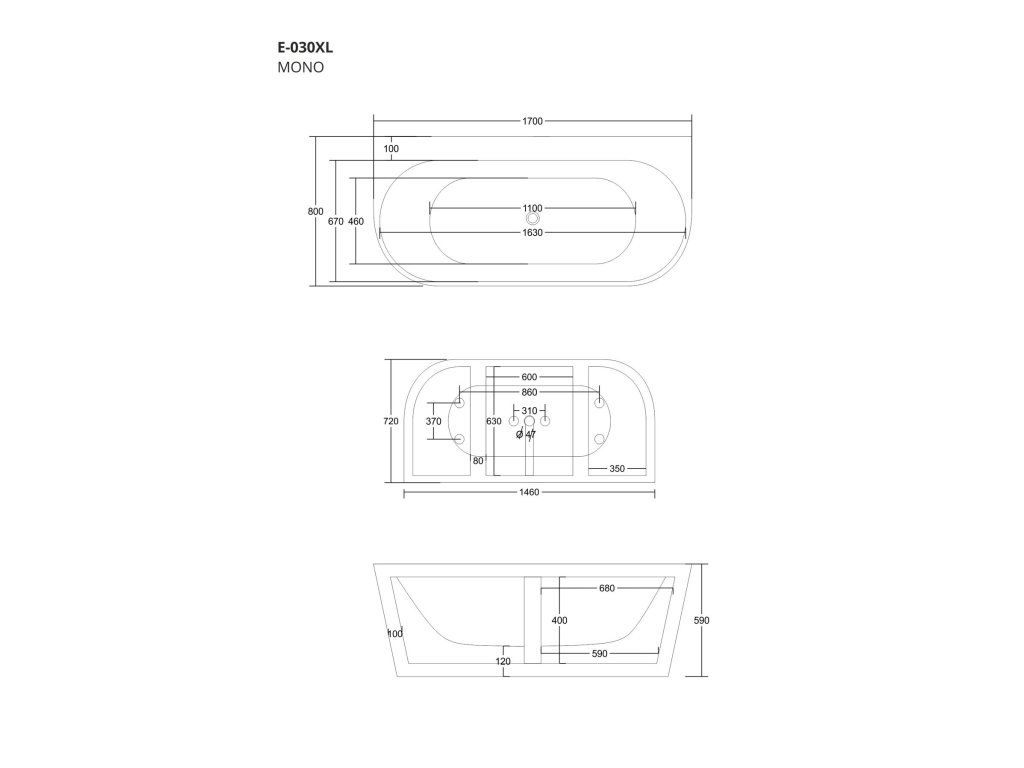 Specifikace volně stojící akrylátové vany Mono