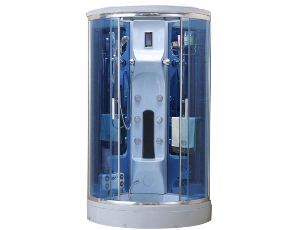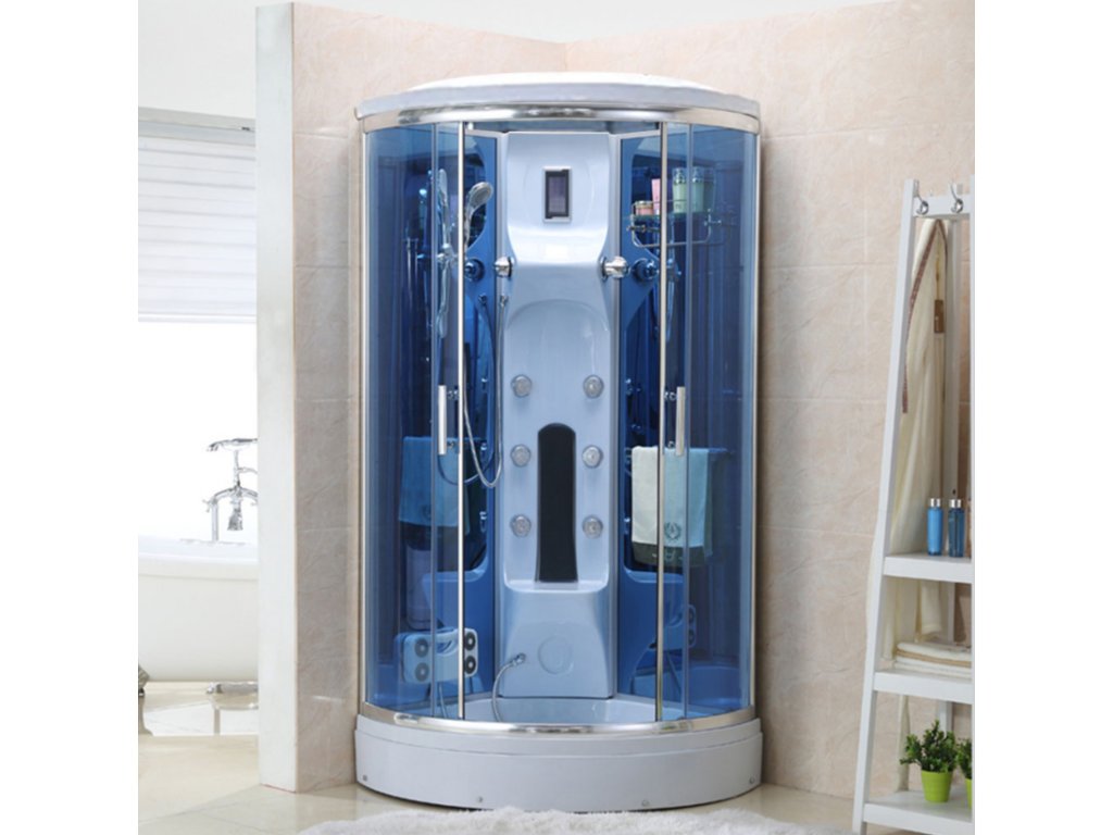 - moderní světlé provedení čtvrtkruhového parního sprchového boxu