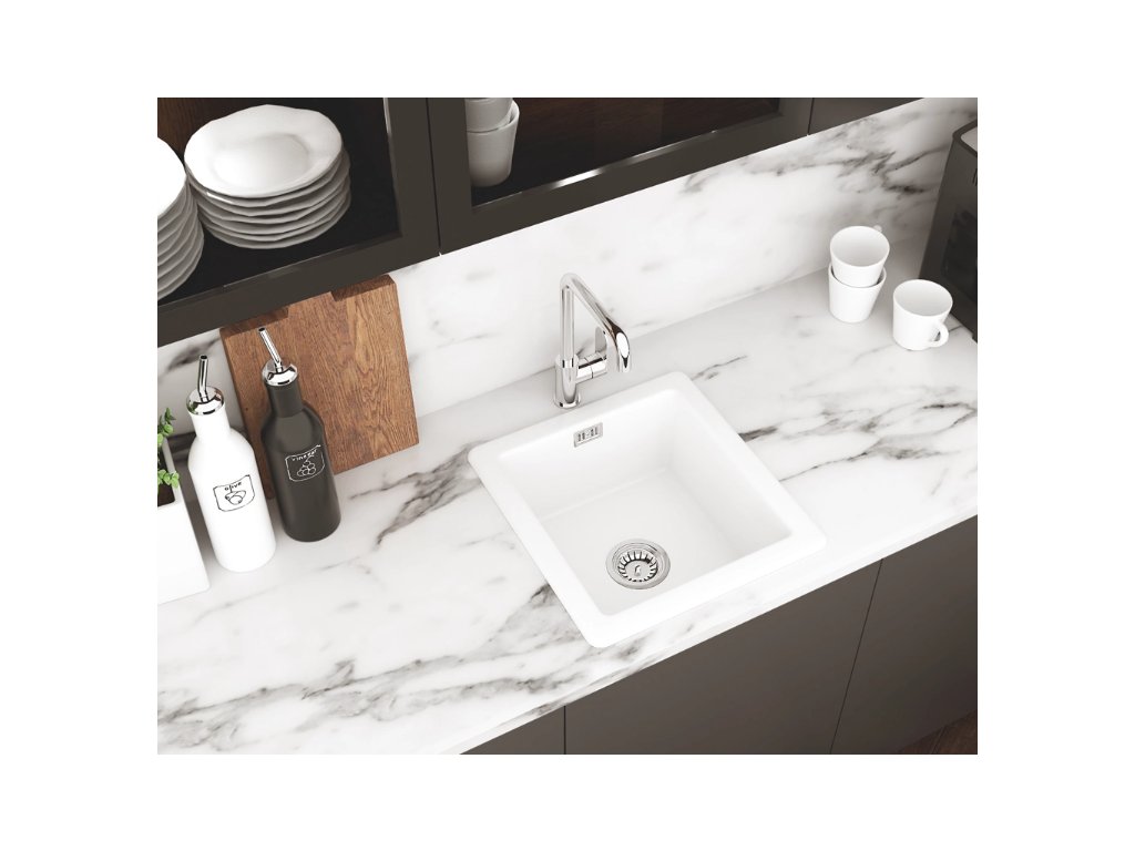 Keramické umyvadlo bylo vytvořeno z vysoce kvalitní suroviny přírodního původu. Díky tomu je odolný vůči vysokým teplotám a rychlým změnám teploty. Navíc časem neztrácí barvu ani lesk a jeho tlumená, esteticky příjemná barva dokonale ladí s ostatním kováním. Elegantní dřez s jednou mísou je ideálním řešením pro malé kuchyně a garsonky s přístavbou. Tvrdá a odolná keramika neztrácí své vlastnosti ani při dlouhodobém používání.