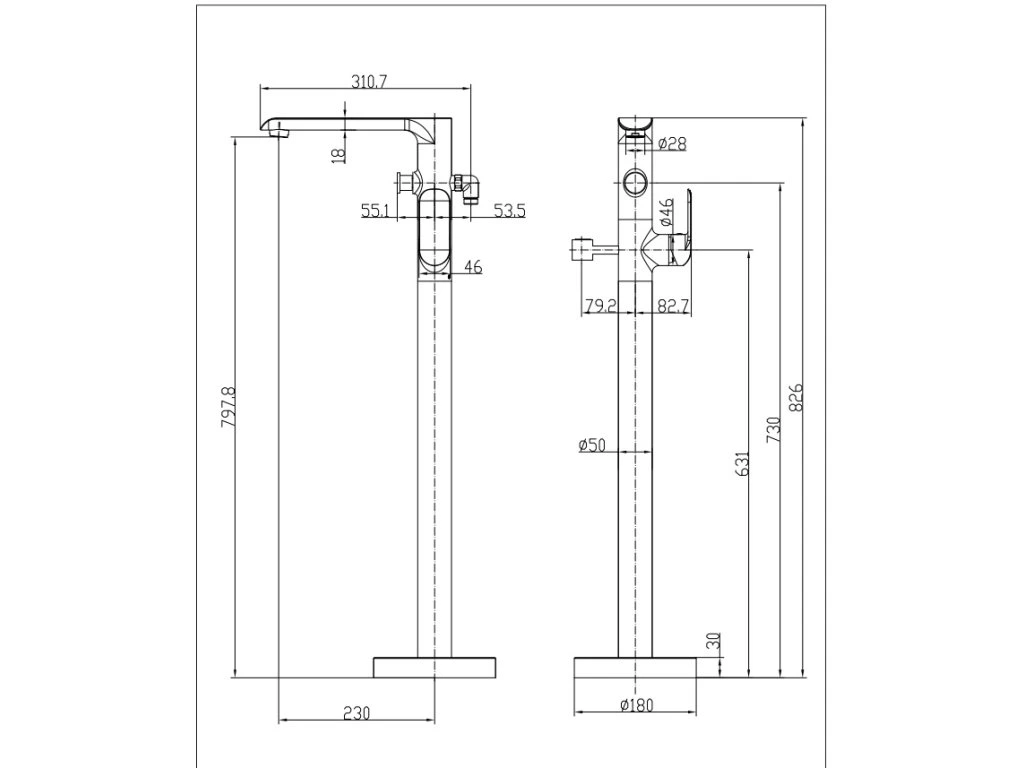 - volně stojící vanová baterie určena na podlahu k volně stojící vaně