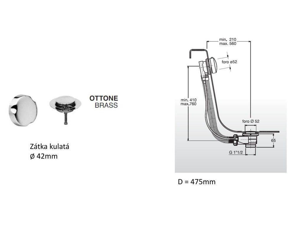 - délka 47 cm (vzdálenost otvoru na přepad a odpadu maximálně 47,5 cm)