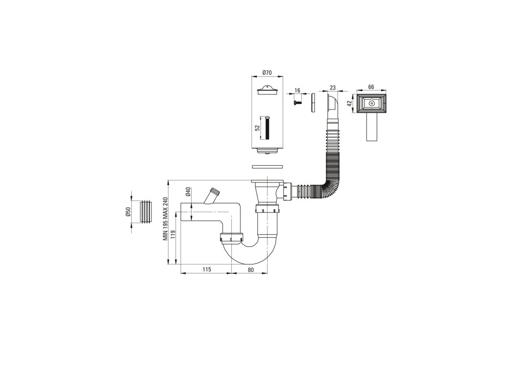 Aplomo Techno 38/38 kuchyňský dřez včetně sifonu, ZMU0100