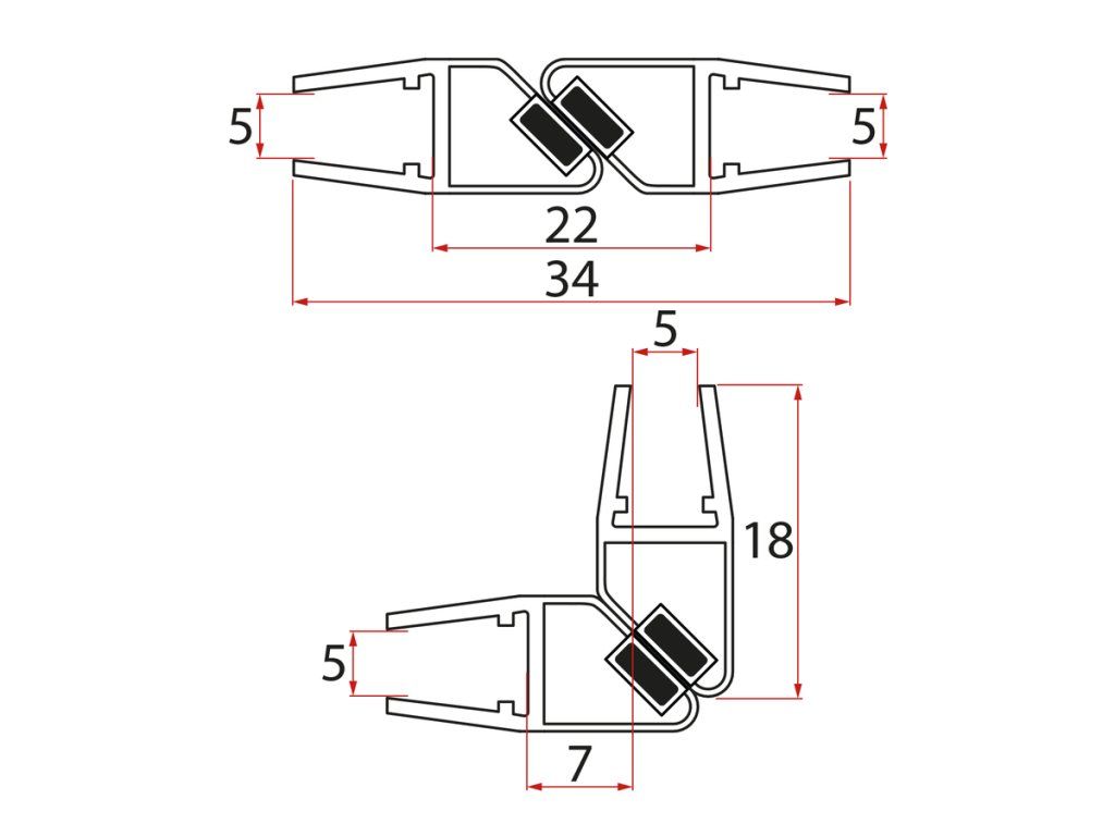 Aqualine Set magnetických těsnění 45°pro sklo 5/5mm, 2000mm MAG03