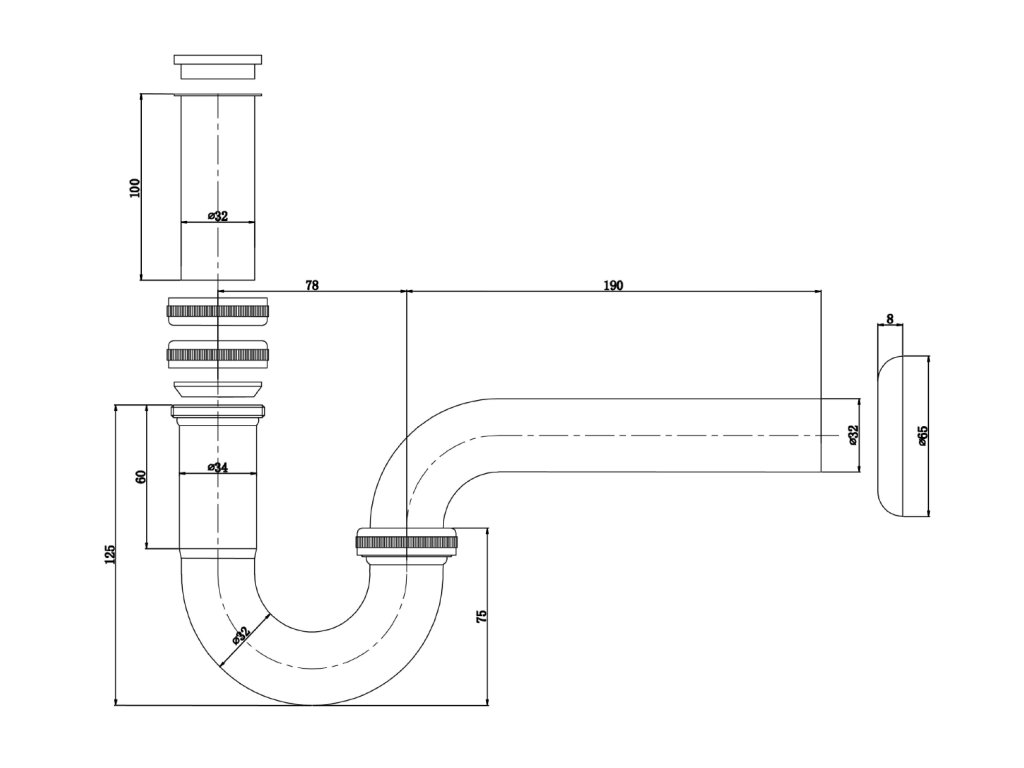 Aqualine Umyvadlový sifon 5/4", odpad 32mm, chrom CV1005