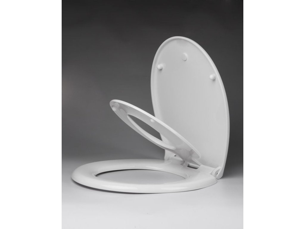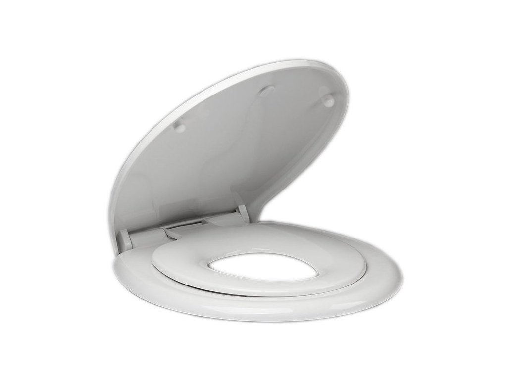 WC sedátko s integrovaným dětským sedátkem a pomalým sklápěním. Dětské sedátko je opatřeno magnetem, aby přilnulo k velkému víku a nepřekáželo tak při používání WC u dospělých osob. V případě, že děti sedátku odrostou, lze vložku jednoduše z dospělého sedátka vyjmout.