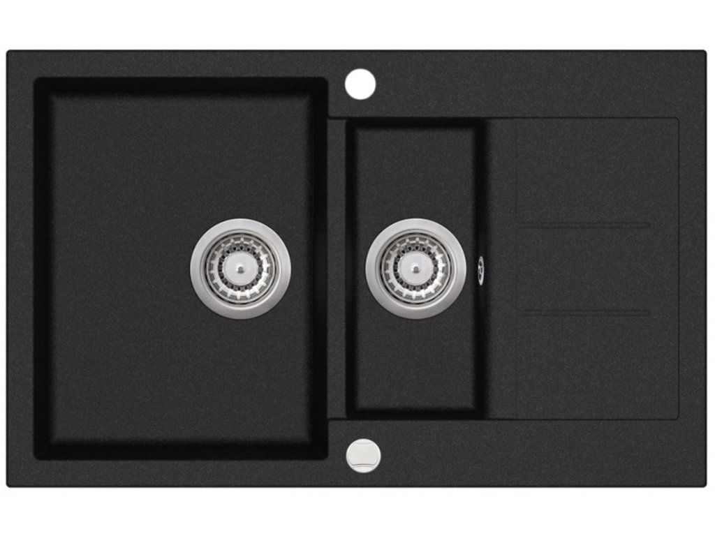 - granitový dřez s odkapem a druhou menší vaničkou, s excentrickým ovládáním