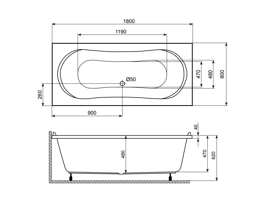 Rozměr: 180 x 80 x 48 cm (k tomu nutno připočíst 12 - 16 cm nastavitelný rám s nožičkami) Objem: 210 l Vyrobena z vysoce kvalitního akrylátového materiálu.