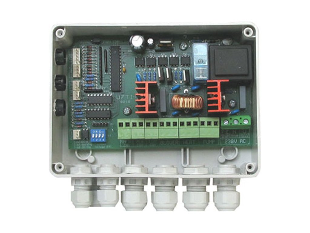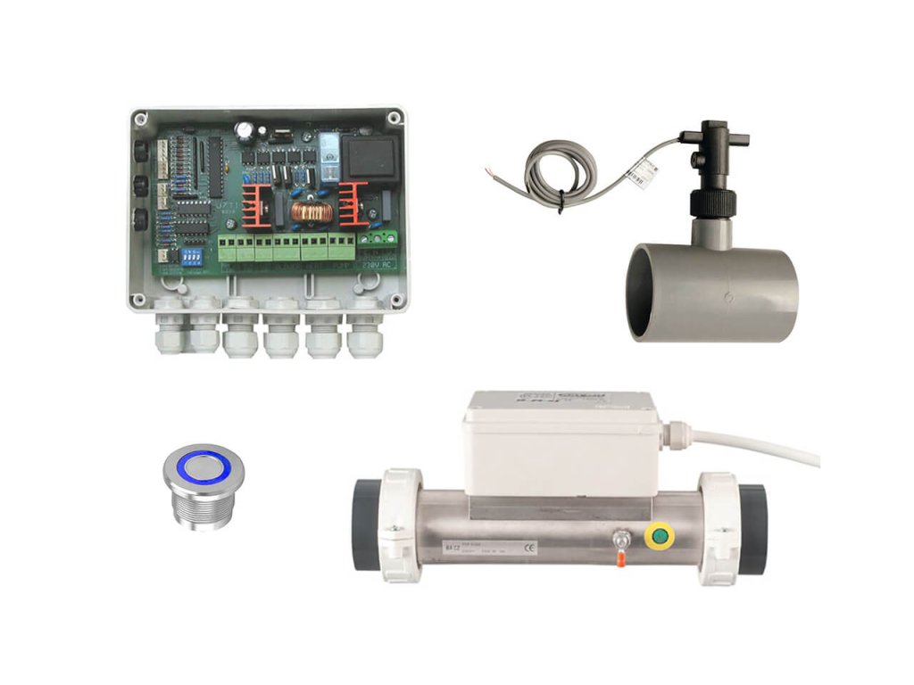 Ohřívání se spustí pouze současně s hydromasážním čerpadlem (musí proudit voda, ochrana proti přehřátí). Výkon je 1 500 W a je dostačující i pro největší vany naší výroby o objemu vody až 300 litrů.