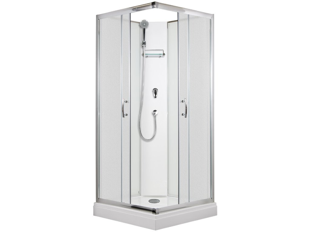 Sprchový box ARTTEC SMARAGD MODEL 1 chinchila, vlastní výroby, s posuvnými dveřmi čtvercový se vyznačuje vysokou kvalitou a jednoduchým designem. Nabízí vše, co potřebujete k pohodlnému každodennímu sprchování: baterii s ruční sprchou a držákem, poličku a vaničku z litého mramoru.
