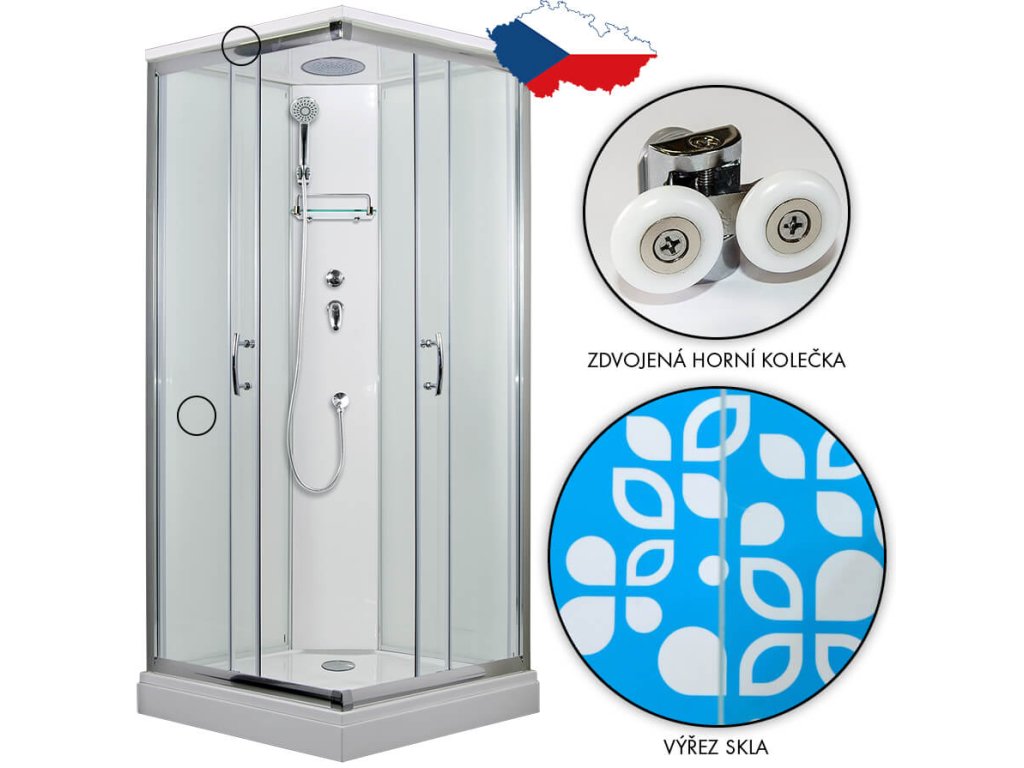 Čtvercový sprchový box ARTTEC SMARAGD MODEL 1 clear, vlastní výroby, vyniká skvělým technickým zpracováním a spolehlivou funkčností všech použitých součástí a materiálů.