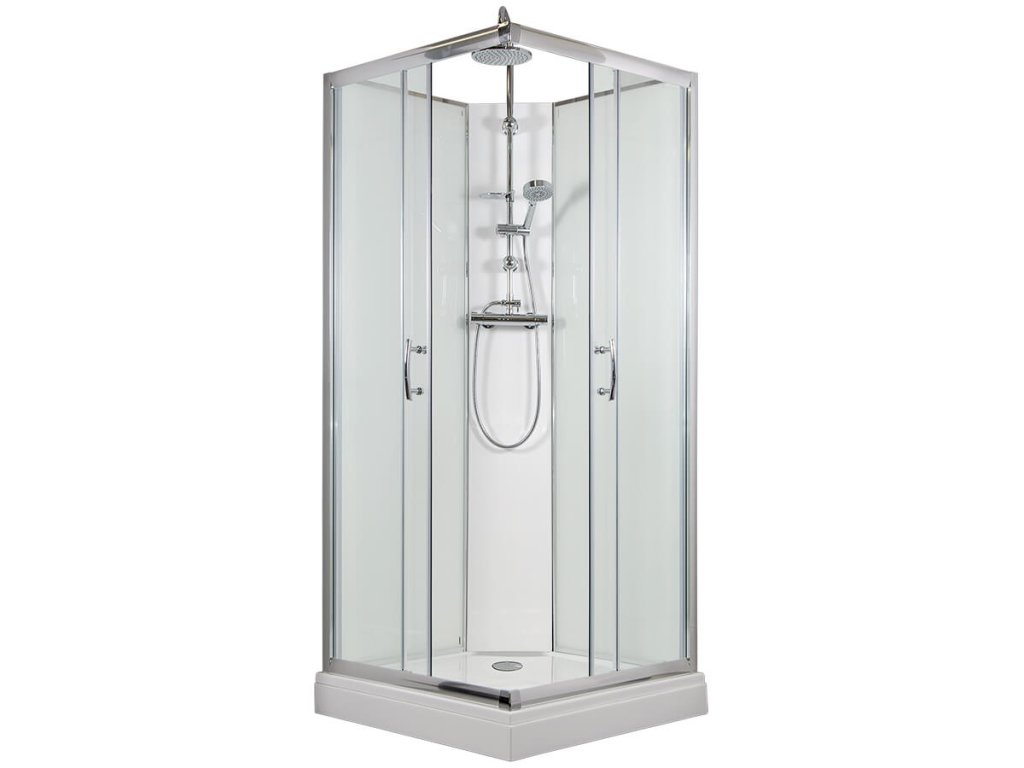 Super bílá neprůhledná zadní skla a přední výplň z čirého 5mm bezpečnostního skla v leštěném hliníkovém profilu zajistí Vaší koupelně elegantní vzhled.