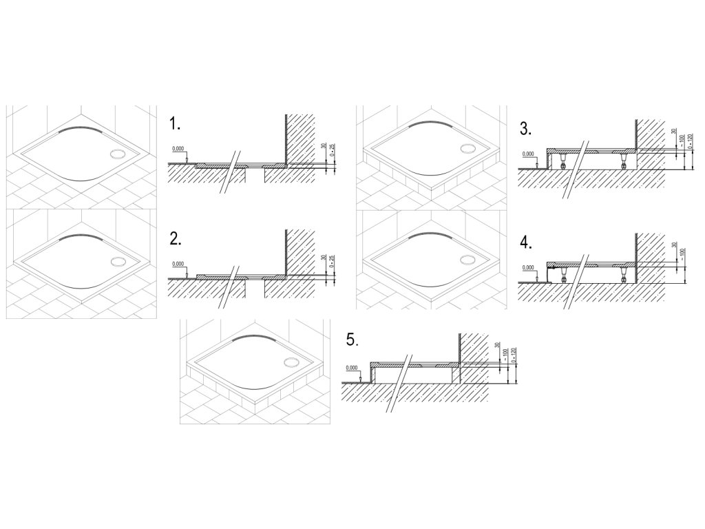 Sifon není součástí setu. Doporučujeme dokoupit protizápachový vaničkový sifon o průměru 90 mm s vyjímatelným středovým kroužkem pro snadné čištění.