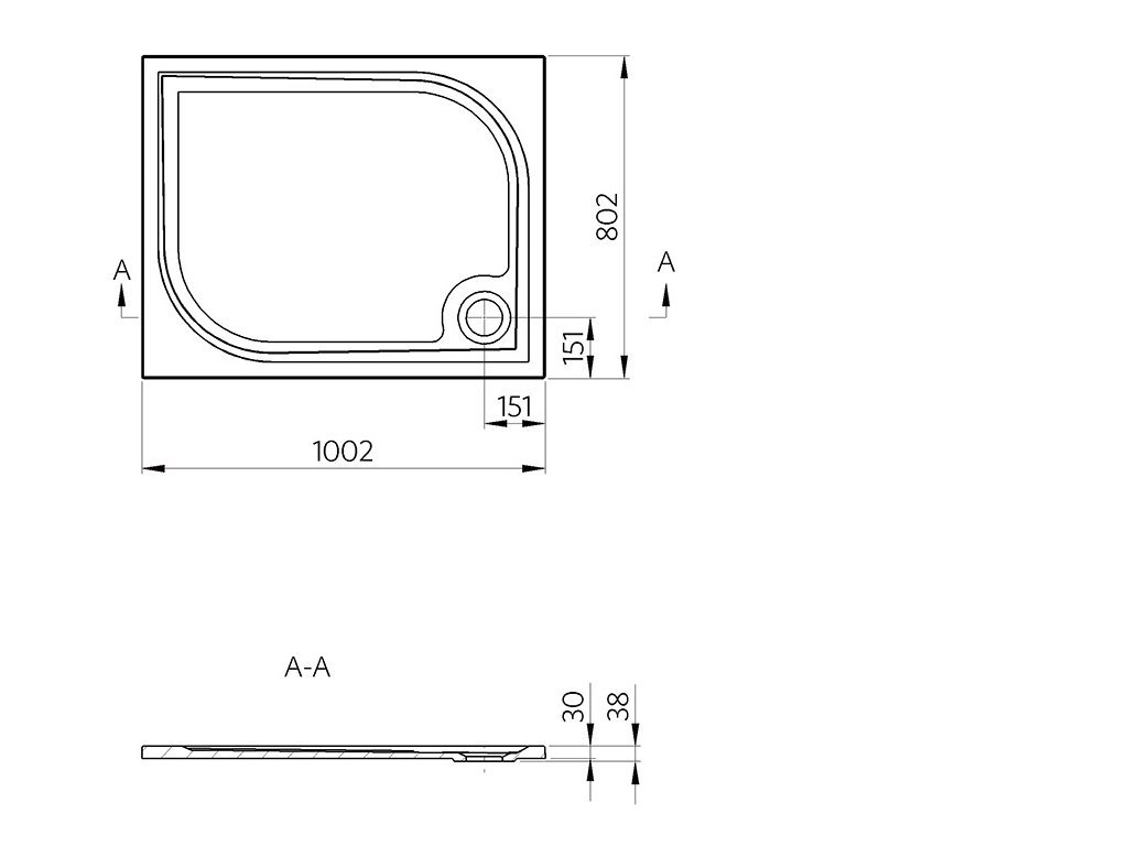Obdélníková vanička do sprchového koutu LINEA 100 x 80 x 3 cm.