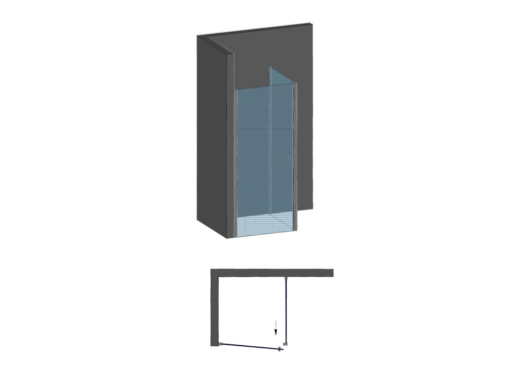 Rozměry: 85-90 x 86,5-88 x 195 cm (sprchové dveře x pevná stěna x výška)