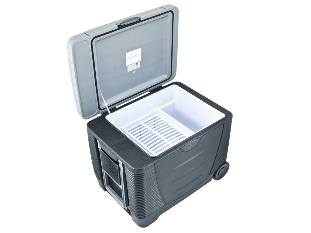 Když autochladničku plně naplníte, jistě oceníte, že je vybavena praktickými kolečky a madlem, takže ji nebudete muset přenášet, ale pohodlně jí posunete, kam budete potřebovat.