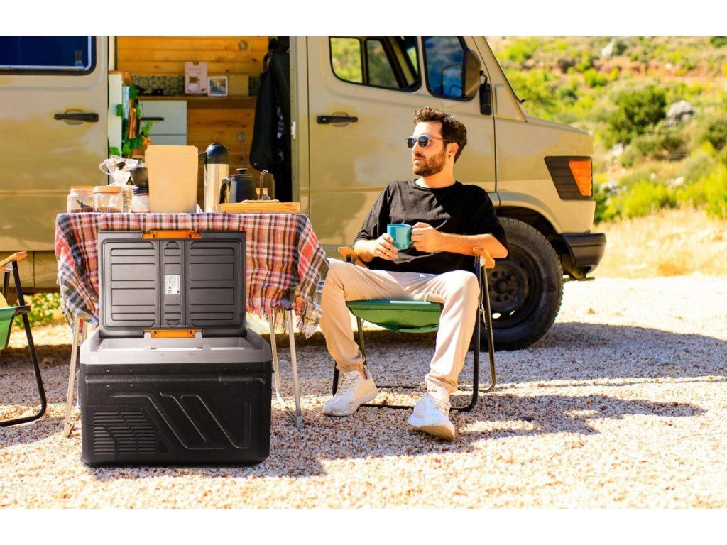 Díky oboustranně otvíratelnému víku nemusíte s autochladničkou v kufru auta složitě manipulovat a přetáčet ji. Snadno se do ní dostanete ze dvou stran. Při kempování zase oceníte integrovaný otvírák na lahve. A skvělá je i možnost dobít si z autochladničky mobil, sluchátka a další zařízení přes USB. Porty má hned dva – klasický USB i USB-C.
