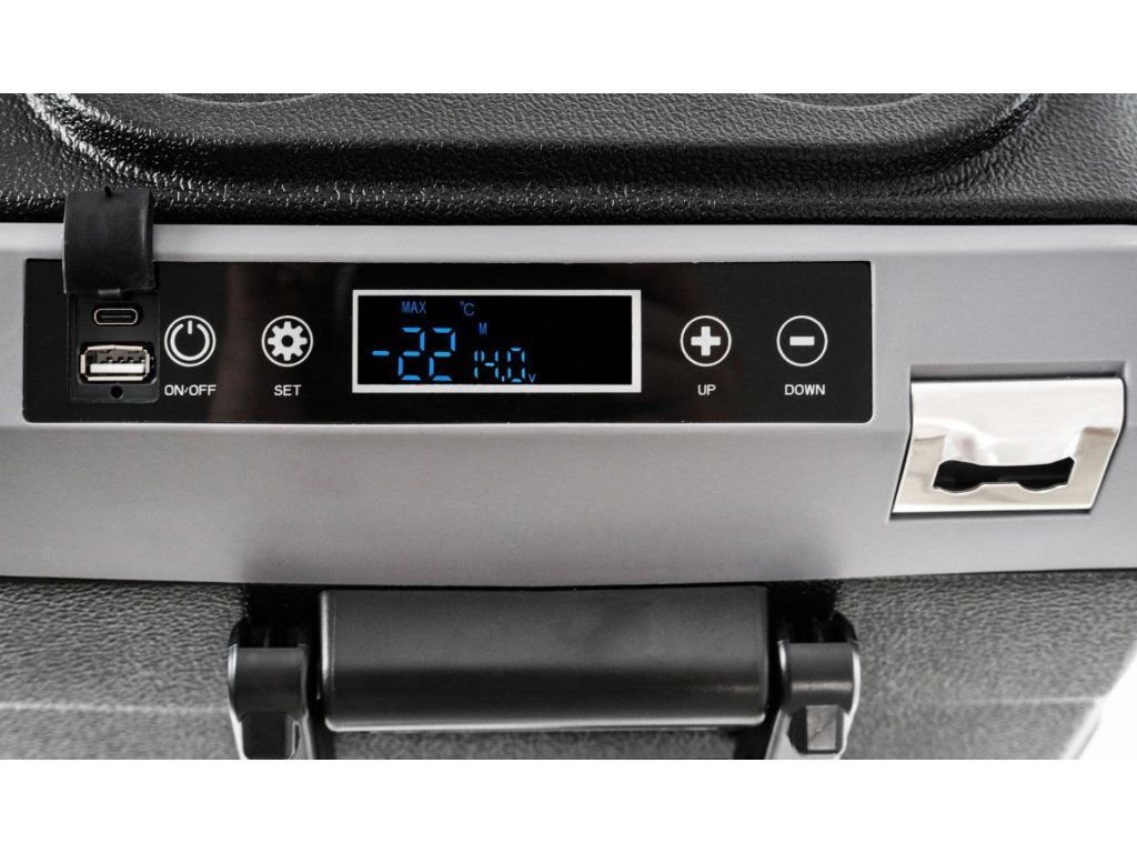 Díky oboustranně otvíratelnému víku nemusíte s autochladničkou v kufru auta složitě manipulovat a přetáčet ji. Snadno se do ní dostanete ze dvou stran. Při kempování zase oceníte integrovaný otvírák na lahve. A skvělá je i možnost dobít si z autochladničky mobil, sluchátka a další zařízení přes USB. Porty má hned dva – klasický USB i USB-C.