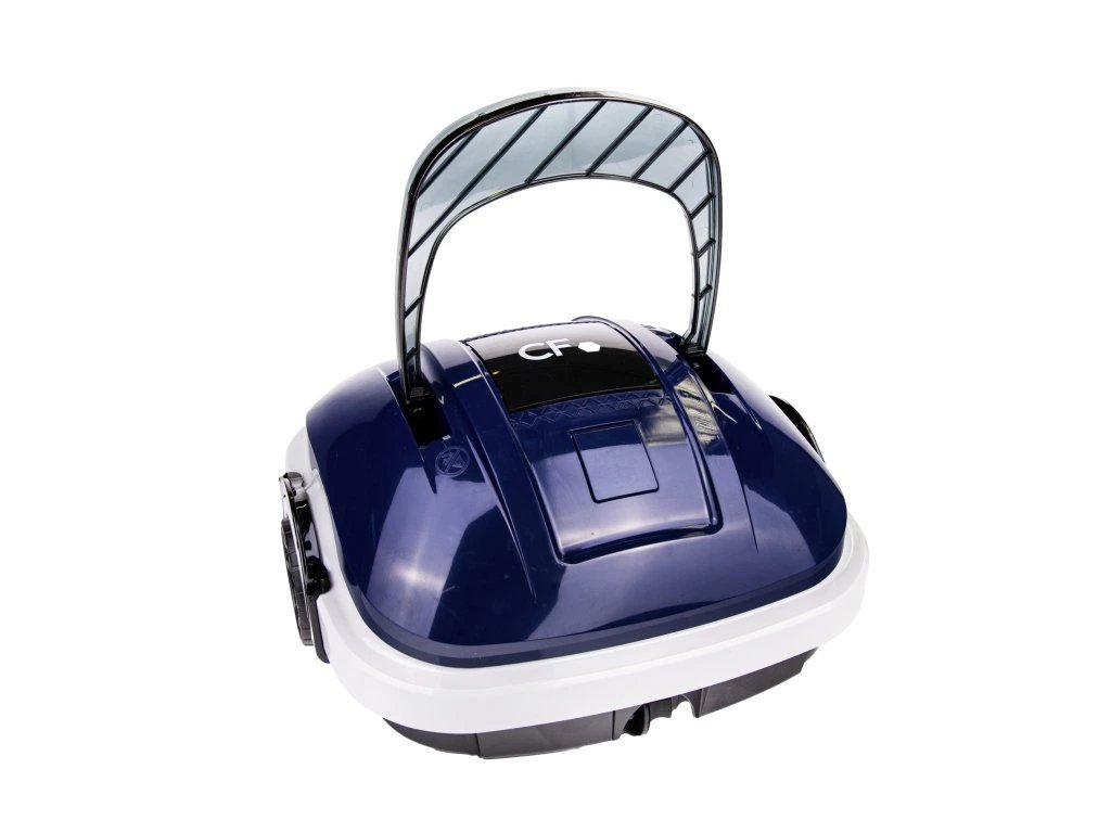 Nová generace automatického vysavače CF 45 AKU – přestaňte se neustále strachovat o nečistoty vbazénu. Automatický vysavač udělá vše za vás. Užívejte si křišťálově čisté vody každý den a péči o čištění přenechejte vysavači. Vysavač CF 45 AKU je vhodný pro všechny typy bazénů do velikosti 50 m2, filtrační cyklus 50 min, určený pro vysávání dna bazénu (maximální sklon 15°).Vysavač vyčistí celé dno vašeho bazénu a na konci cyklu se sám zaparkuje ke stěně bazénu, abyste ho pomocí háku mohli vytáhnout zbazénu. Vysavač je vhodný pro všechny typy bazénu na trhu. Díky svému filtračnímu sítu vás zbaví všech nečistot vbazénu. Jemnost filtru 180 mikronu je dostačující kvysání většiny nečistot (velikost zrnka filtračního písku se pohybuje okolo 600 mikronů). Kzajištění nejlepšího výsledku vysavače doporučujeme vysavač a filtrační síto vždy po čistícím cyklu opláchnout čistou vodou.Nejnovější lithiová baterie zajišťuje výdrž a dodává sílu výkonnému motoru. Už žádné hadice, kabelové šňůry, bateriový vysavač pouze vložíte do bazénu a vysavač udělá vše za vás. Výdrž baterie na jedno nabití je 50 min. O baterii je třeba pečovat pravidelným dobitím (neponechávejte baterii dlouhodobě vybitou!), udržujte vysavač nabitý a při uskladnění se přesvědčte, že je nabitý min na 40-50 %. Správnou péčí o baterii prodloužíte její životnost na 800-1 200 nabíjejících cyklů.Obsah balení:Motor vč. baterie a horní částiPodvozek vysavače (2 kola hlavní + 2 směrové)Filtrační síto 180 mikronůNabíjecí adaptérVytahovací hák na teleskopickou tyč (běžné tel. tyče o vnitřním rozměru 26 mm)StěrkaManuálParametry:BarvaModrá (CF Moonlight)TypAutomatický, akumulátorovýČištěníDnoVelikost bazénu3,05; 3,66; 4,6; 5,5; 3,6x5,5; 3,6x7; 3x6; 3,5x7 mMax. čistící plocha50 m2Max. sklon15°Pracovní cyklusmax. 50 minRychlost cca 16 m / minMaximální hloubka 2,5 mJemnost filtru180 mikronůFiltrace vody8 m3/hPříkon motoru30 WNapětí11,1 VVoděodolnostIPX8Kapacita baterie2600 mAhTyp baterieLithiumDoba nabíjení3 – 4 hod.Filtrační systémVyjímatelné filtrační sítoTeplota vody10 – 35 °CpH vody7,0 - 7,4Koncentrace soliMax. 5 000 ppm (5 g soli na 1 l vody)Koncentrace chlóruMax. 2 ppmHmotnost3,6 kgRozměr balení40 x 21,3 x 41 cm