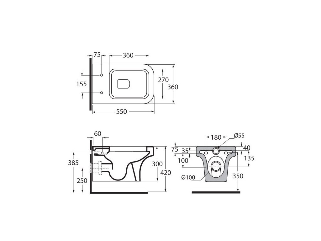 Rozměry wc: 55 × 36 × 30 cm (h × š × v)