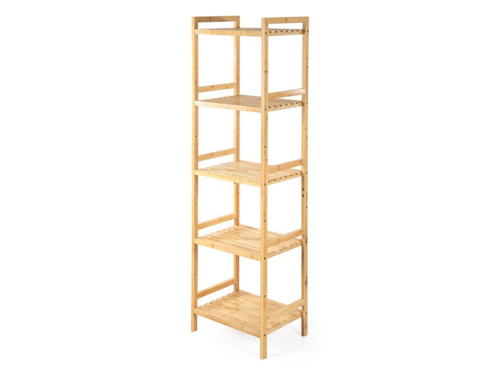 Bambusový regál s pěti policemi dodává interiéru příjemný přírodní dojem, pocit lehkosti a přirozenosti, zatímco jeho pevnost a dlouhá životnost zajišťují stabilitu a trvanlivost.