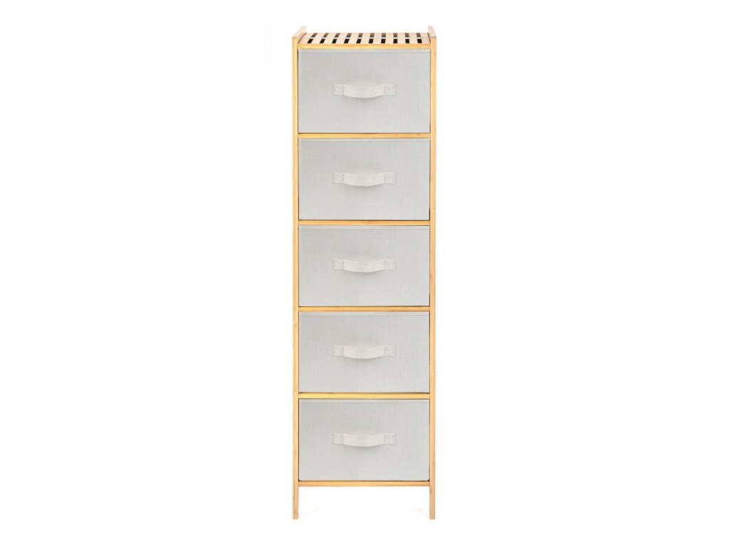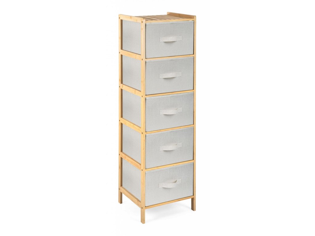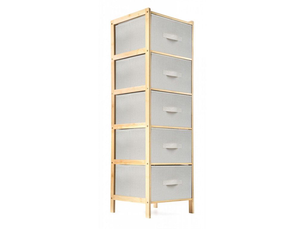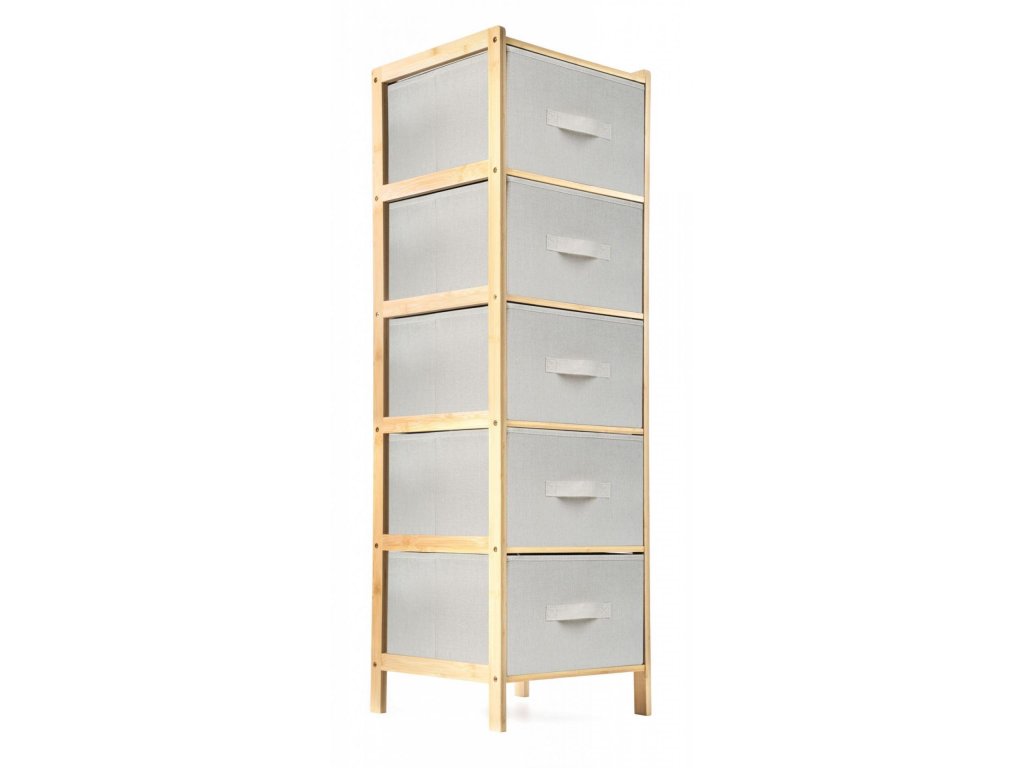 Praktický stojan s 5 výsuvnými textilními košíky ušetří spoustu místa a uložíte do něj vše, co potřebujete. Potřeby na praní nebo kosmetiku, oblečení i dětské hračky. Každý košík má objem 21 litrů, šířka je 33 cm, výška 19 cm a hloubka 35 cm. Celý stojan má na výšku 1,20 m.