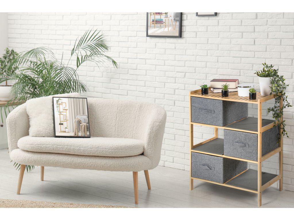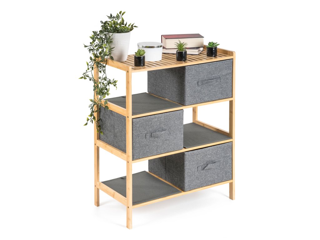 - Určení: bambusový regál s textilními košíky