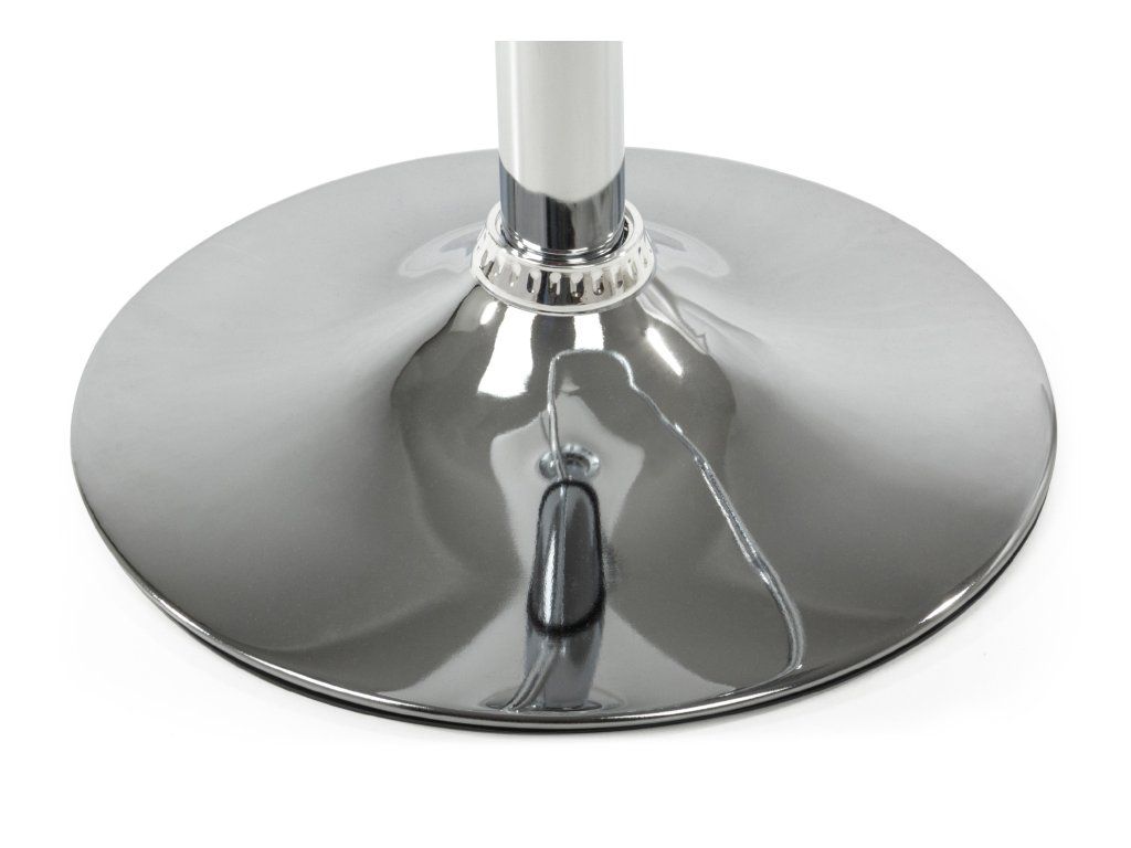 Noha židle je vyrobena z pochromované oceli a má pohodlnou opěrku na nohy na kruhovém podnoží. Chrom má zrcadlový efekt, který působí velice čistě a elegatně.