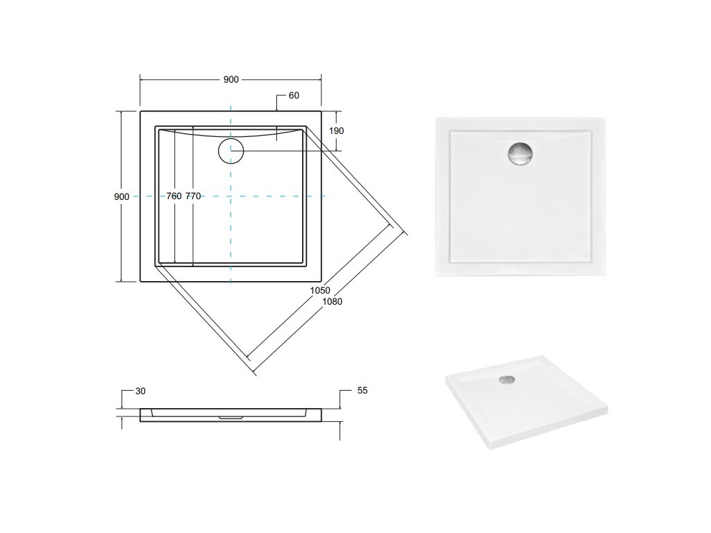 - čtvercová - vhodná pro všechny čtvercové sprch. kouty, nebo dveře