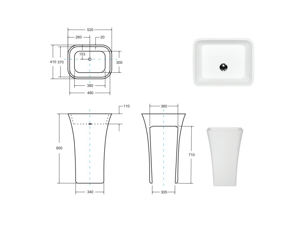 • veškeré technické specifikace naleznete v nákresu umyvadla