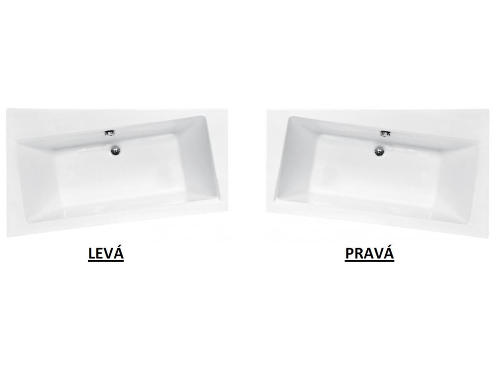 Designová asymetrická vanaASTI s ostrými křivkami. Vhodná jak do malých, tak ale i do velkých koupelen.