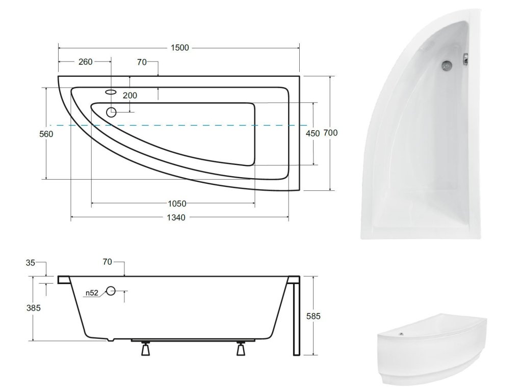 Domů/Sanita/Vany/Standardní/BESCO Asymetrická vana FONDI Nožičky k vaně - S nožičkami, Rozměr vany - 150 × 70 cm, Způsob provedení - Levé OLVFON15L+OLVPINOZ
