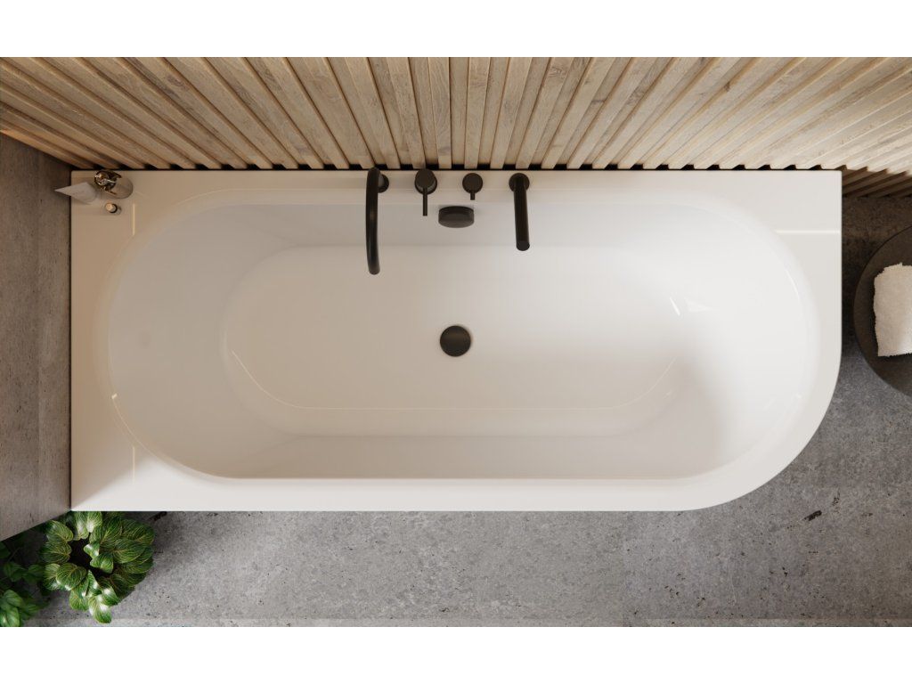 Besco Avita A-line volně stojící akrylátová vana se sifonem, napouštění přes přepad B&W Délka vany: 150cm, Orientace: Pravá, WAA-15ABPN