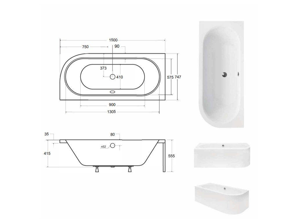 Besco Avita akrylátová vana Délka vany: 150cm, Orientace: Levá, WAV-150-NL
