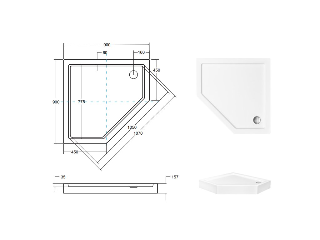 - rozměry vaničky - 90 x 90 x 15,7 cm