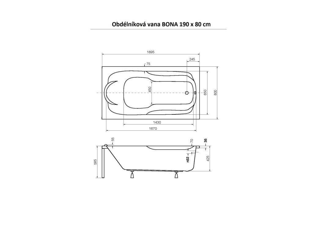 Specifikace akrylátové vany Bona
