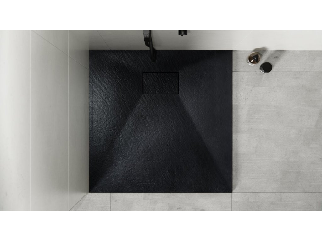 Sprchová vanička VEXO, vyrobená z SMC materiálu, zaujme matnou černou povrchovou úpravou s jemnou strukturou, imitující přírodní kámen. V ceně vaničky je zahrnuta i krytka sifonu v barvě vaničky a vaničkový sifon o průměru 90 mm. Tvar sprchové vaničky umožňuje instalaci na podlahu nebo v úrovni podlahy, což umožňuje bezprahový vstup do sprchového prostoru. U vaniček z SMC materiálu je možná rozměrová úprava.
