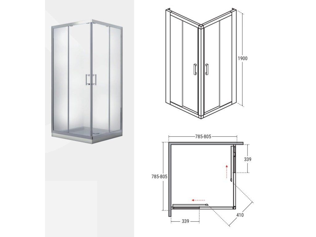BESCO Čtvercový sprchový kout MODERN CHROM 190 Barva rámu - Chrom/Leštěný hliník (ALU), Rozměr A - 80, Rozměr B - 80, Rozměr C - 190, Směr zavírání - Univerzální Levé / Pravé, Výplň - Brick bezpečnostní sklo - 6 mm BCMO280CTVERCF