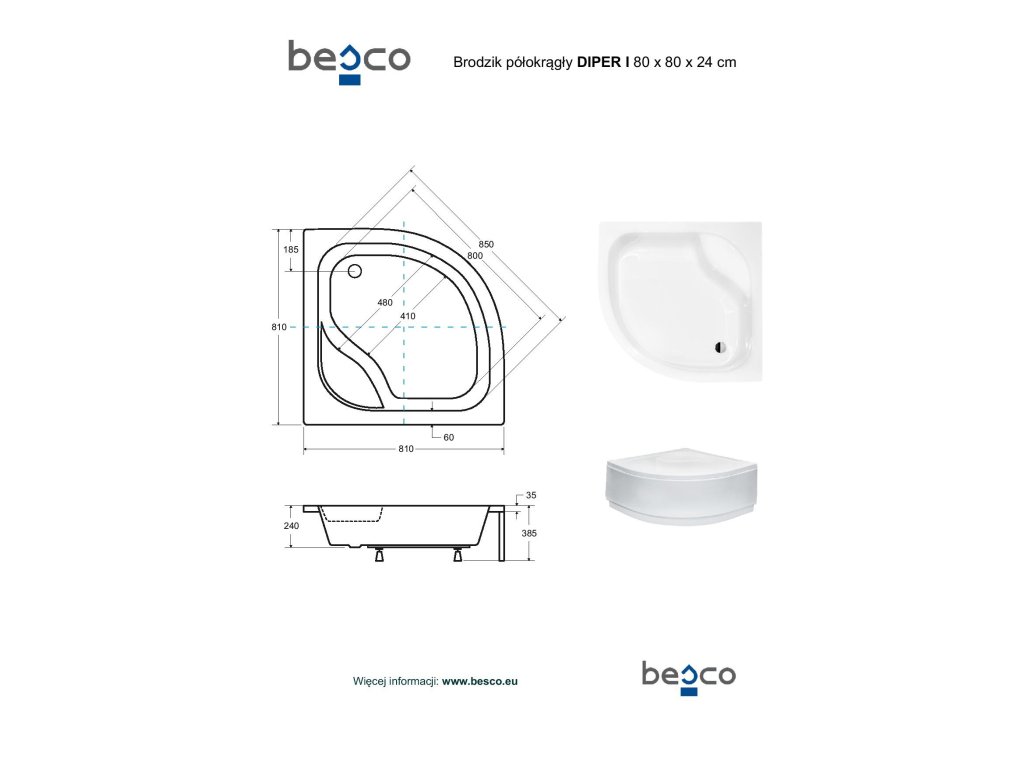 BESCO Čtvrtkruhová sprchová vanička DIPER I Nožičky k vaně - S nožičkami, Rozměr A - 80, Rozměr B - 80 VANKDIPERI80
